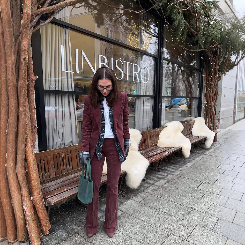 2024新型カレー色襟長袖外修身ズボンセットアマゾン熱売ファッション気質スーツ