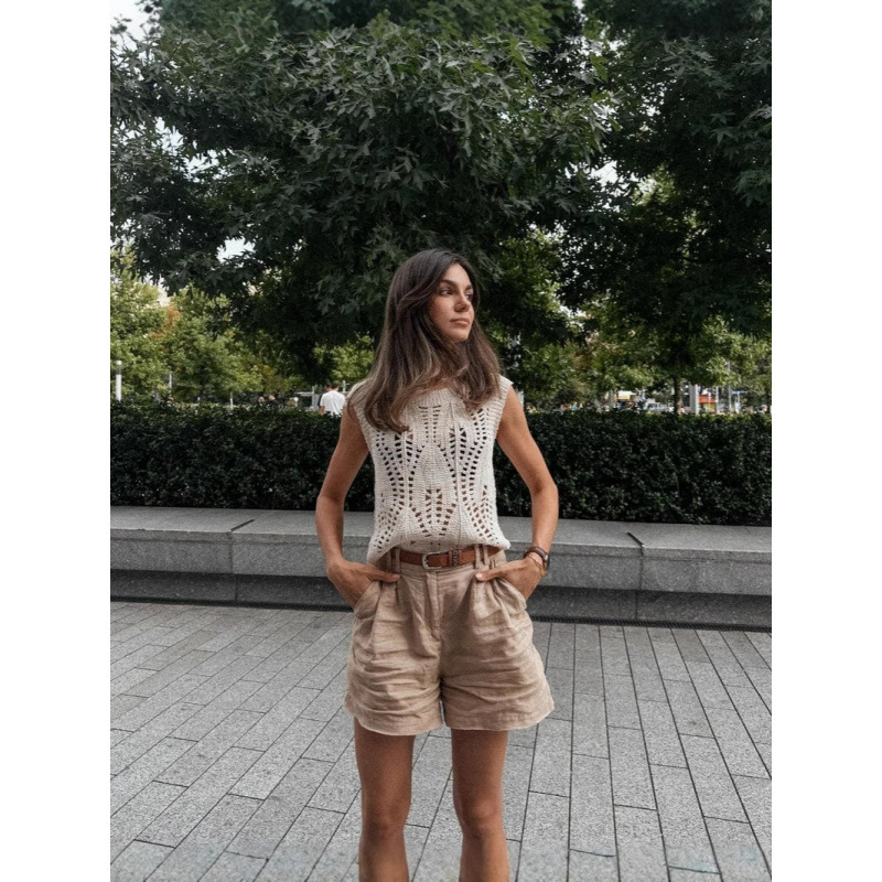 2024新型杏色抜き袖なしベスト式上着ファッション気質怠惰風ベスト欧米クロスボーダー熱売