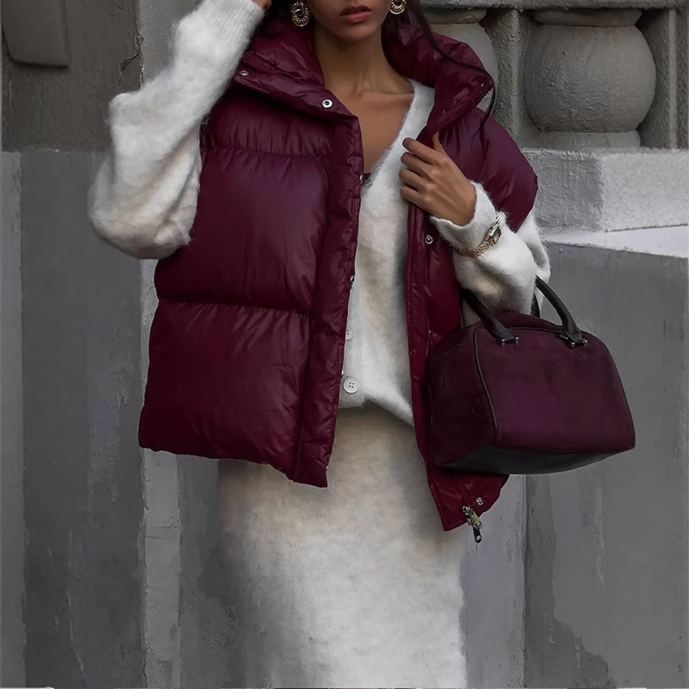 2024クロスボーダー速売通爆金純色ノースリーブベストコート気質通勤ジッパー綿服保温ベスト
