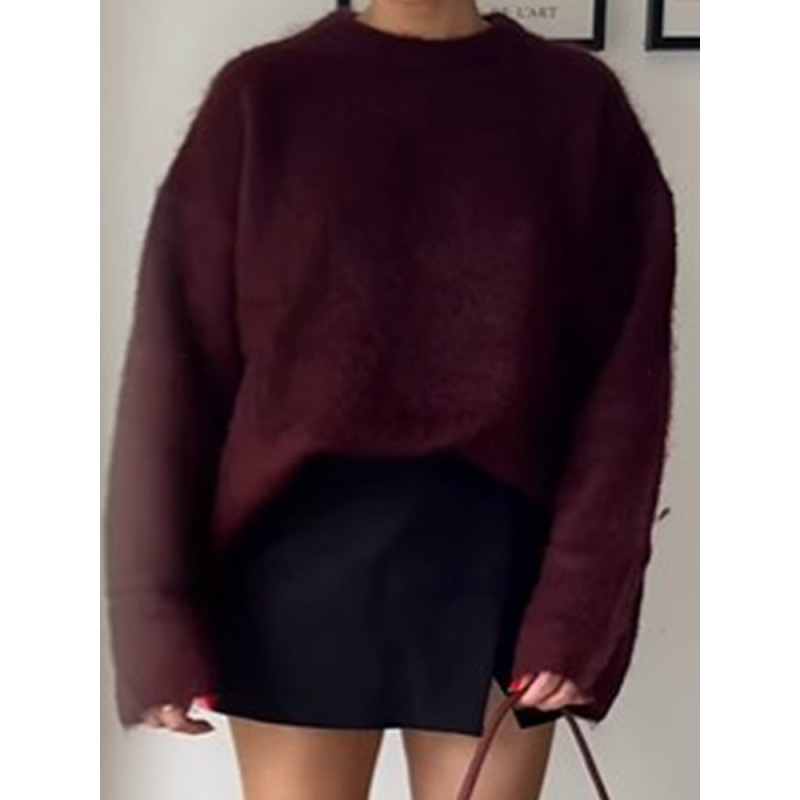 実写街頭欧米クロスボーダー深酒赤色長袖プルオーバーファッションブルゴーニュ赤ゆるいセーター
