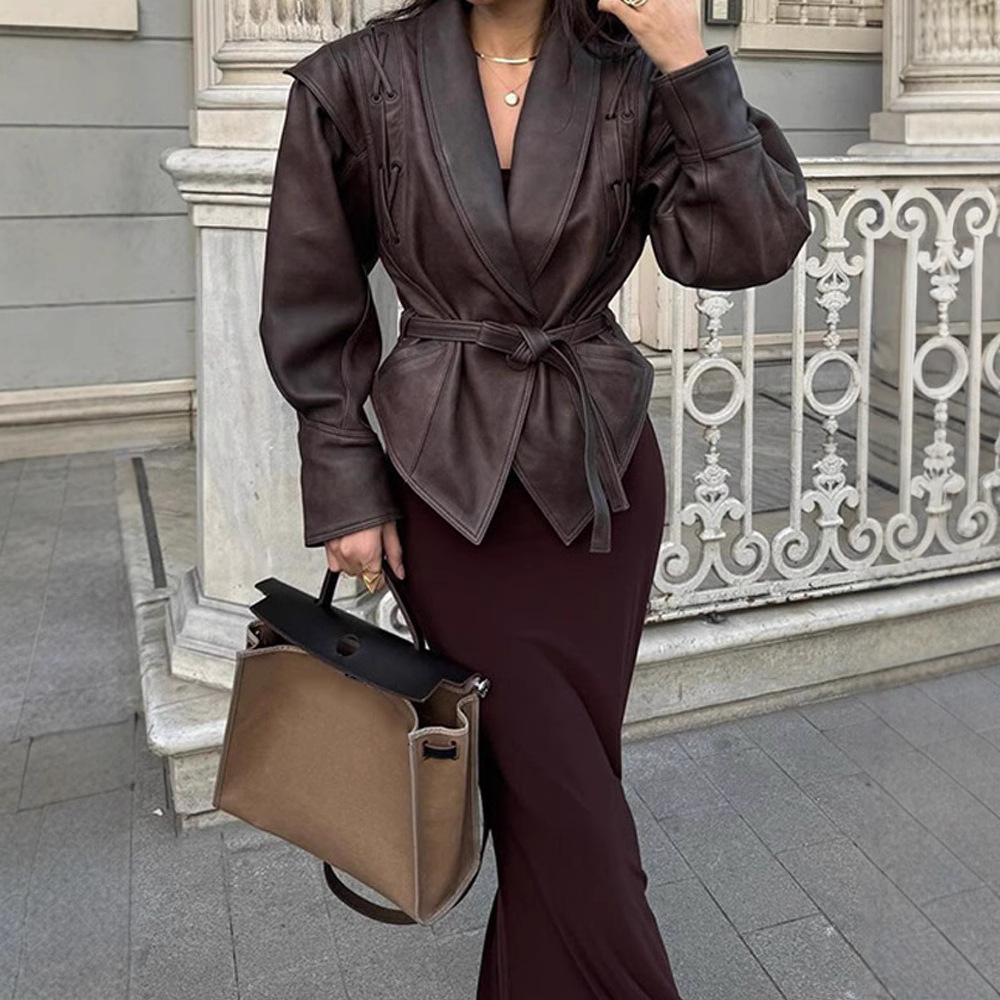 実物写真-越境欧米ファッション2024秋冬新作レースアップコート、ファー一体型エレガントジャケット
