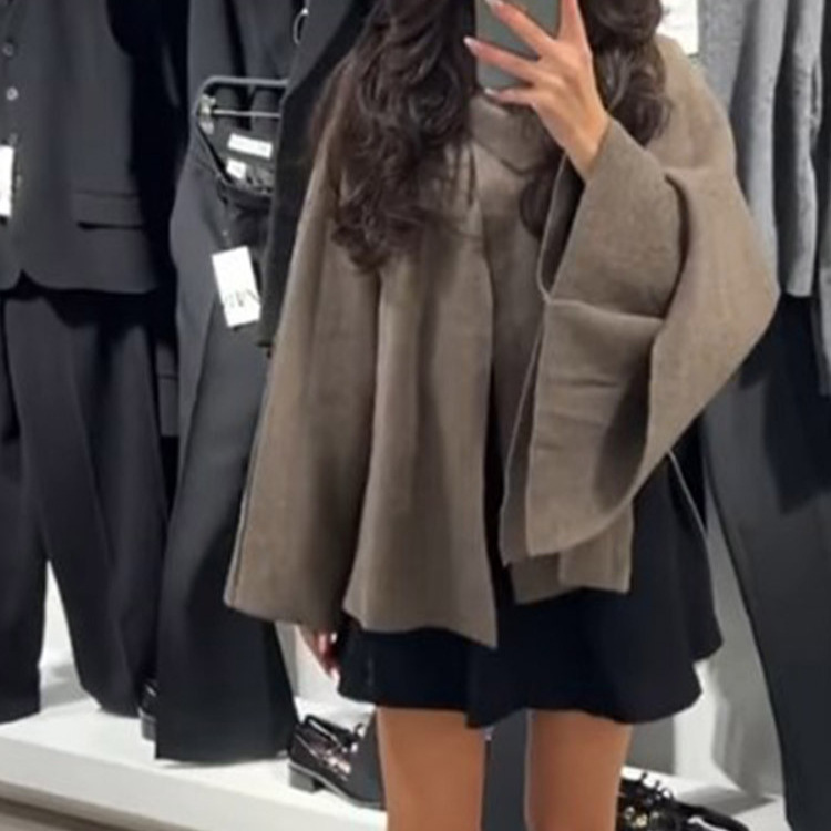 マント式の中長のコートのコートの欧米の越境する新型のファッションは非対称のマフラーのニットのコートを配合します。