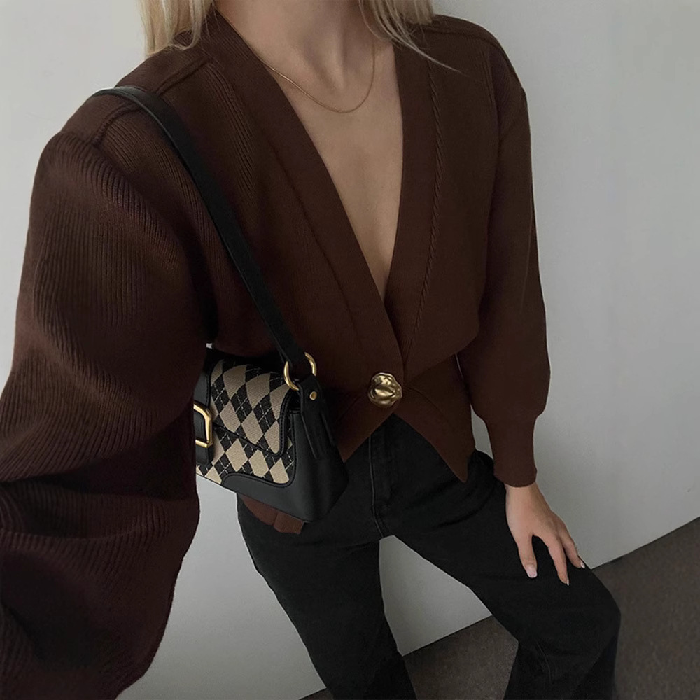 2024欧米の国境を越えた新しい襟付きラッパ袖カジュアルニットスーツのファッションカーディガンのスカート毛織セット