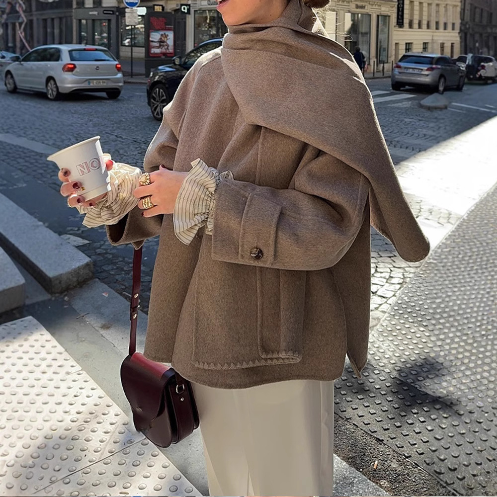 在庫あり - エレガントな通勤スタイルの長袖ストライプスーツスカーフジャケット2025欧米越境秋の新作
