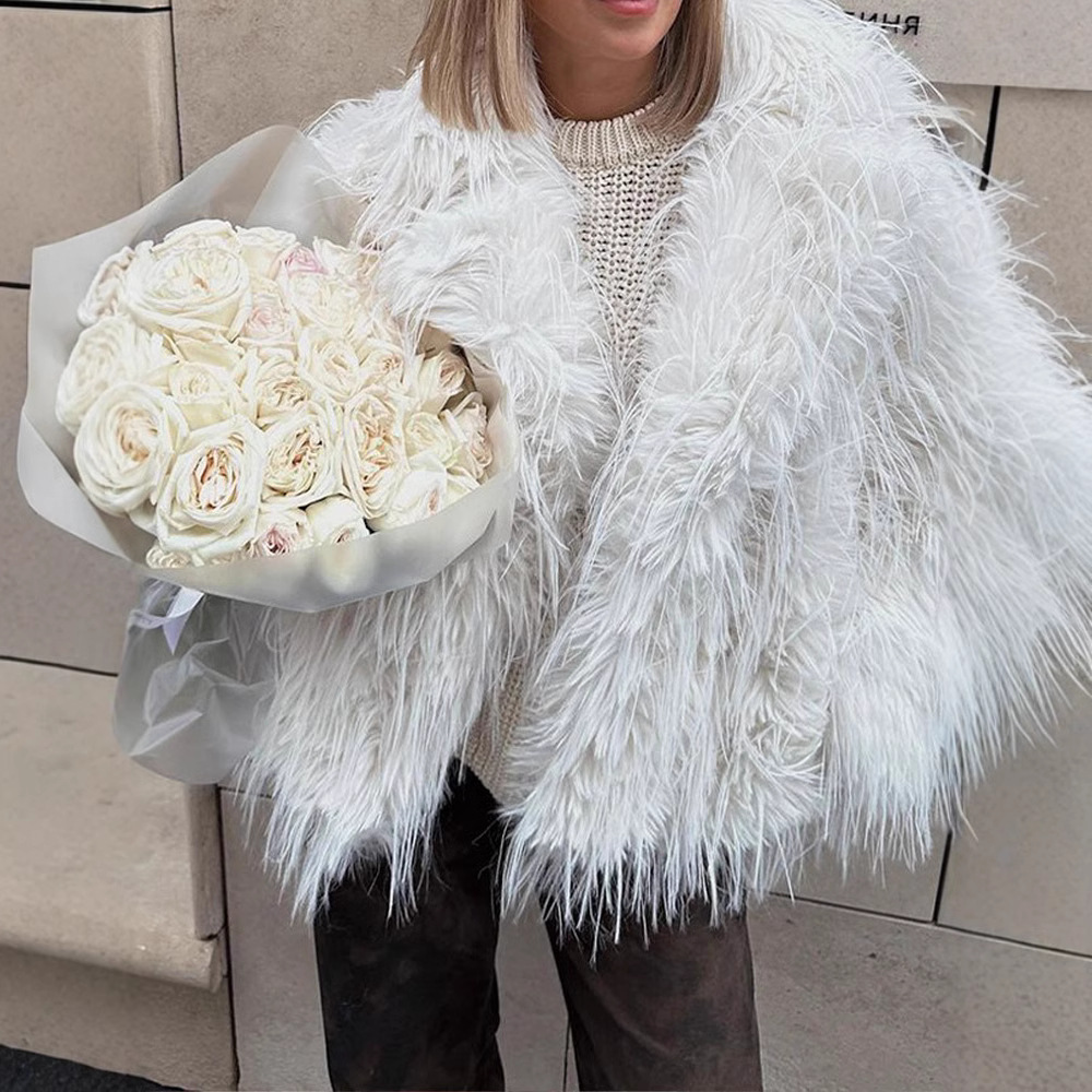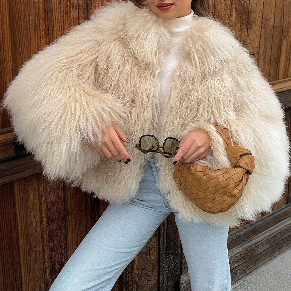 純色の短い毛皮のコート2024欧米の越境ファッション女性の冬の気質の優雅で暖かい長袖のコート