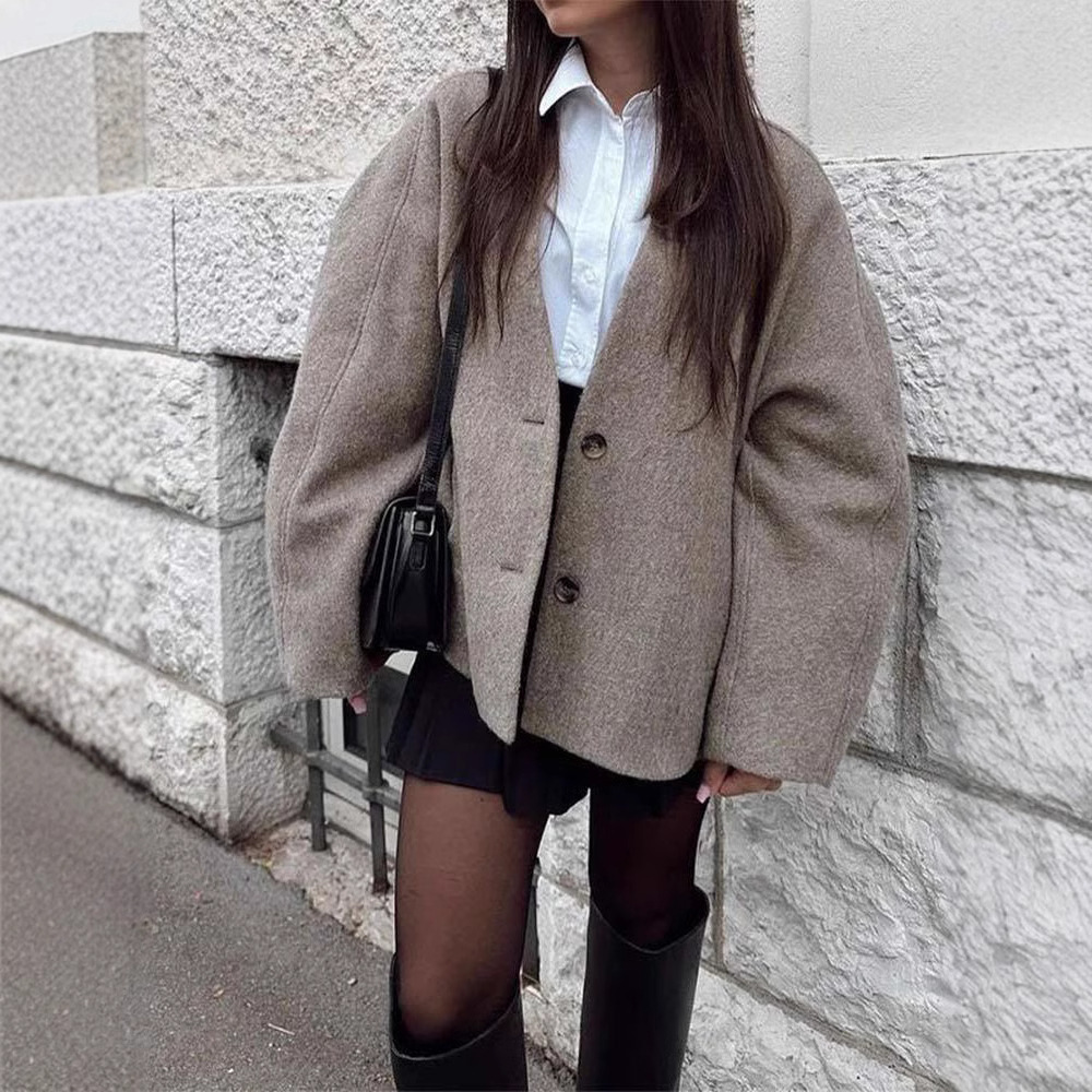 Vネック長袖ボタンコート2024年欧米越境秋冬新作ファッション女性快適通勤カーディガン