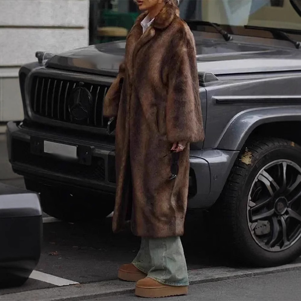 欧米の国境を越えた2024女性の冬の暖かいロングタイプのミンクのベルベットのコートを厚くしてファッション的な街頭のぬいぐるみのコートを厚くする