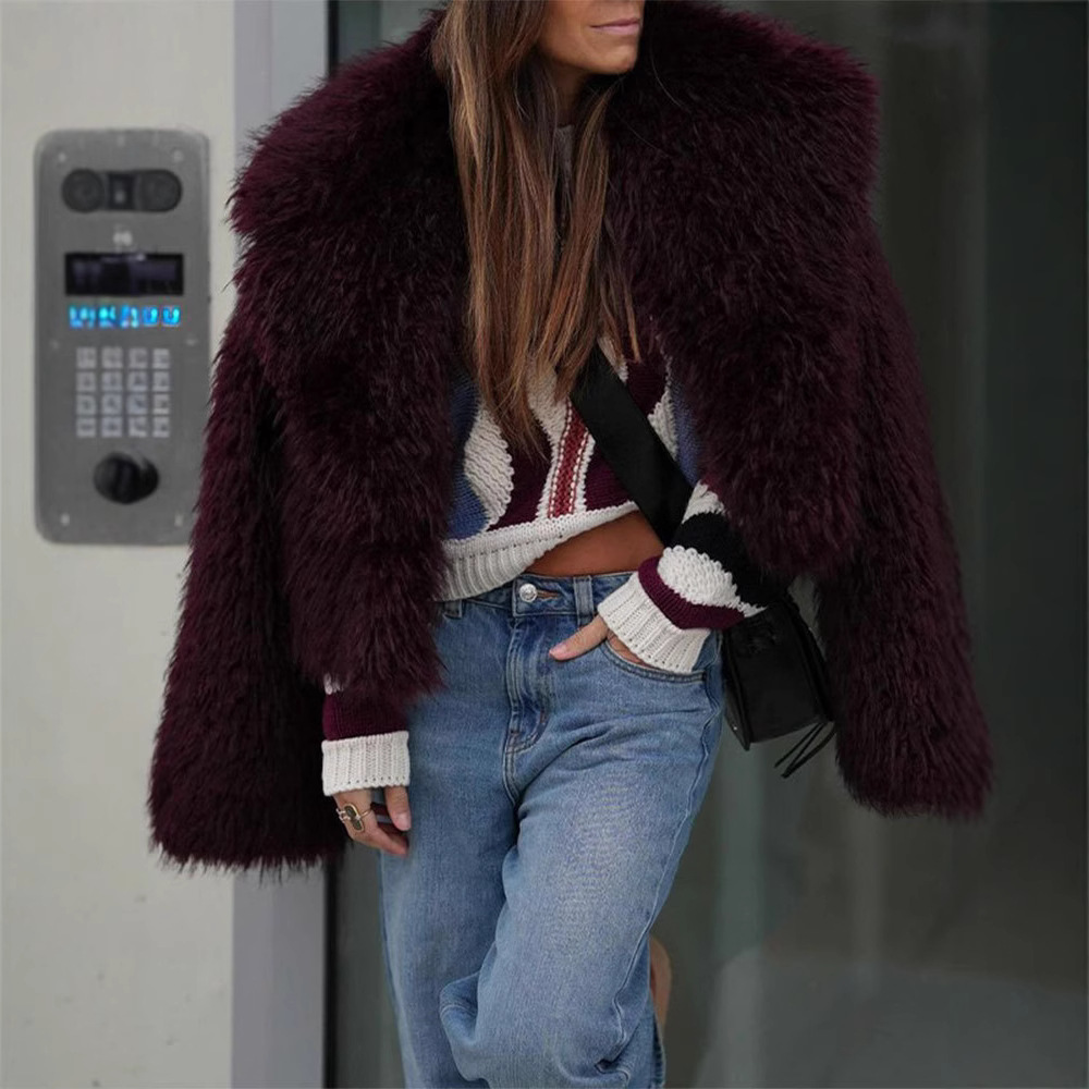 2024クロスボーダー欧米毛長袖毛皮コート気質優雅純色ショート襟パーティーコート