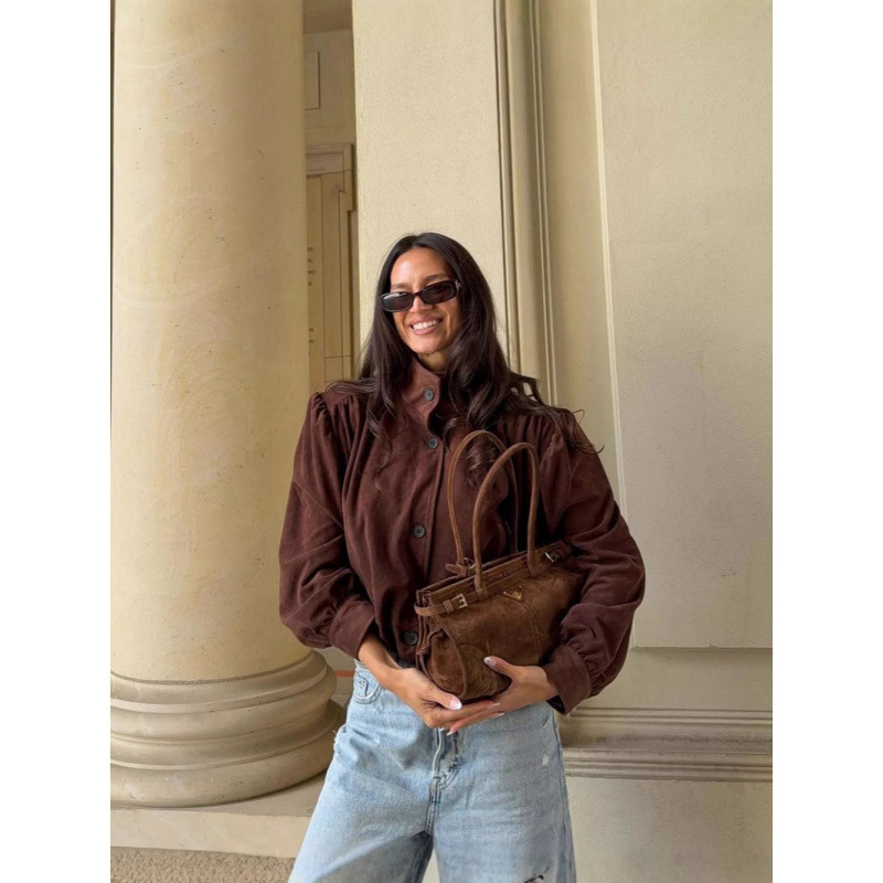 スタンドカラープリーツシングルブレストメイラードカラーショートスエードジャケットクロスボーダー2025秋新作レディースジャケット