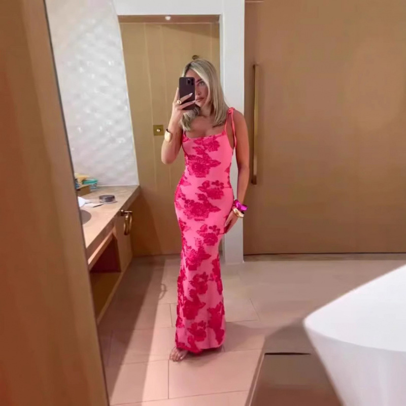 国境を越えたヨーロッパとアメリカのファッション AliExpress 人気のローズレッド立体フラワーノースリーブヒップカバーセクシーなホリデードレス