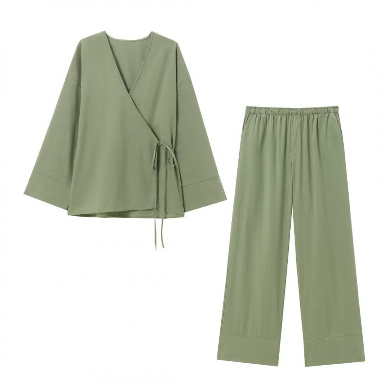 国境を越えたヨーロッパとアメリカのAliExpress人気カジュアルルーズダブルブレスト着物スタイルレースアップアウターハイウエストパンツスーツ