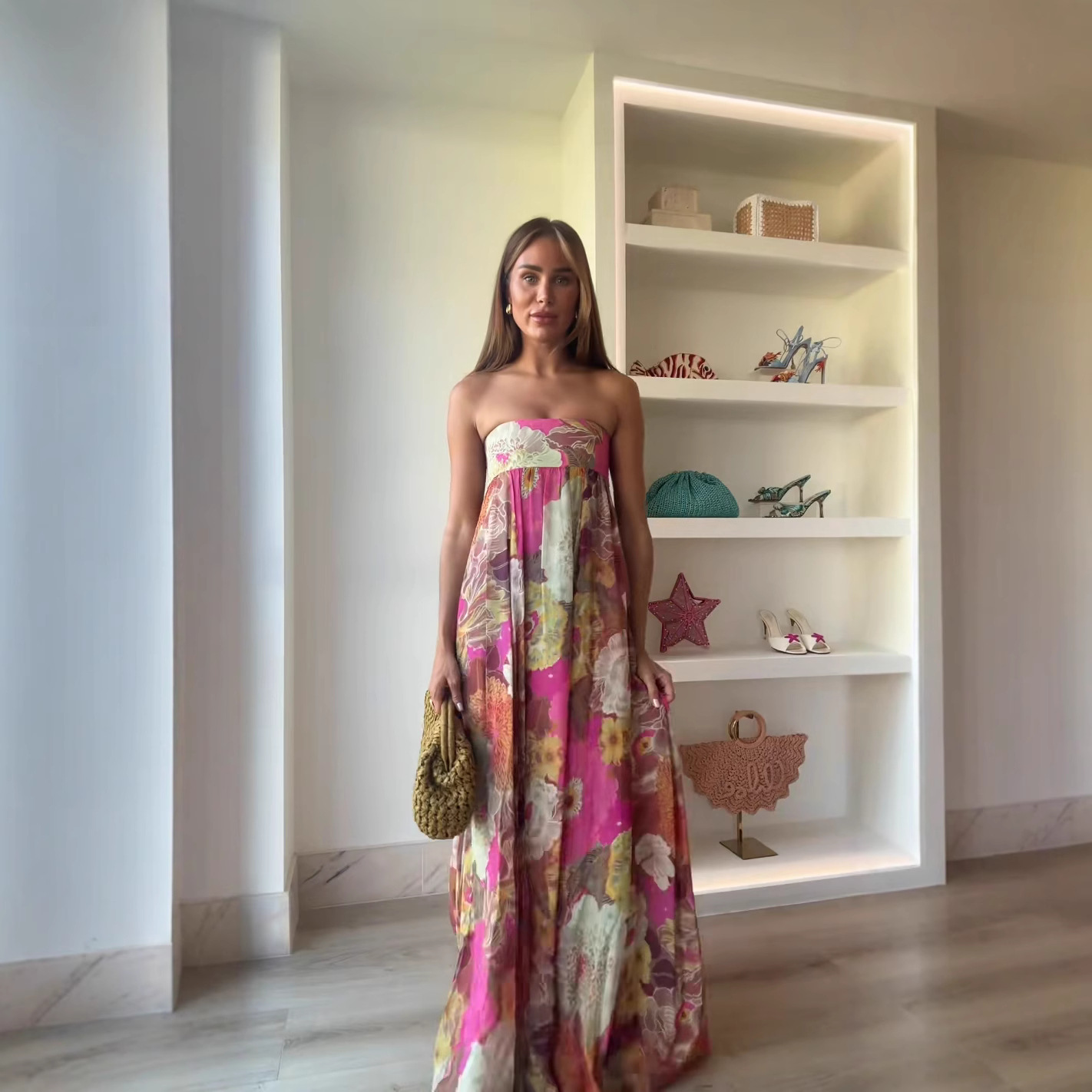 外国貿易クロスボーダーヨーロッパとアメリカの服AliExpressホットスタイル2025セクシーなチューブトッププリントホリデールーズドレス