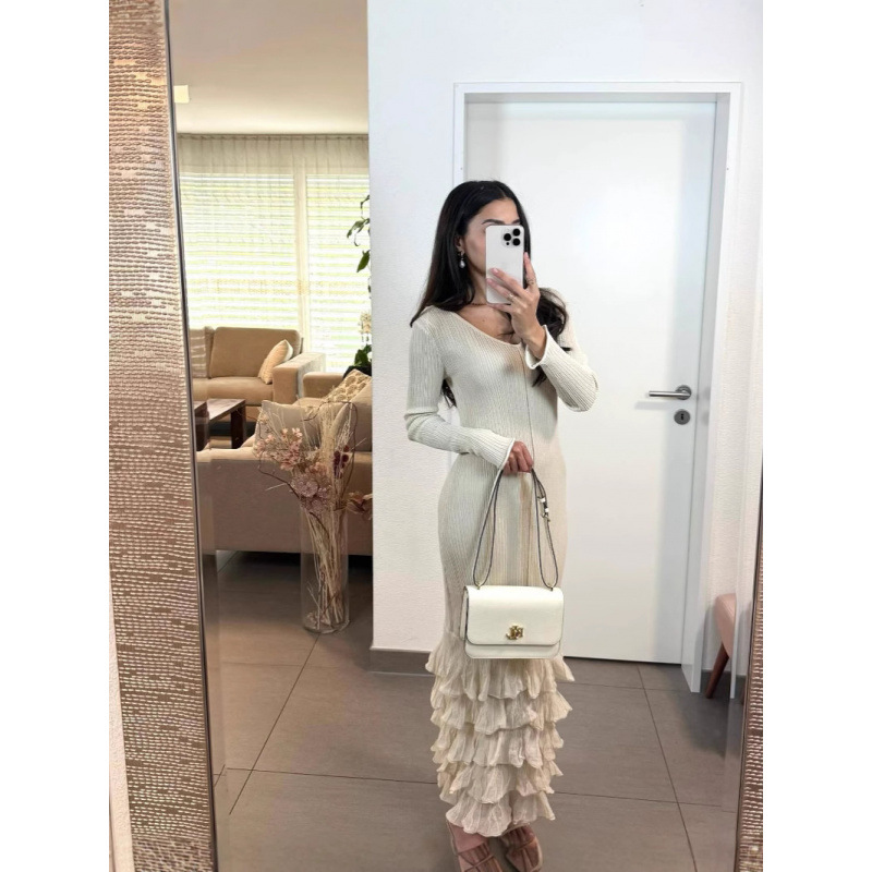 国境を越えたヨーロッパとアメリカのファッションの売れ筋モデルフレンチエレガントな無地Vネックスリム長袖レイヤードスカートニットドレス