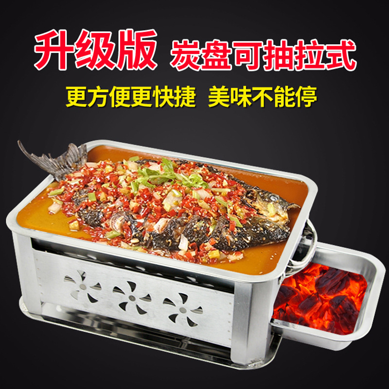 ステンレスの厚い焼き魚炉の炭素焼き木炭アルコール炉の通風の長方形のバーベキュー炉は通風の金を引き出します。