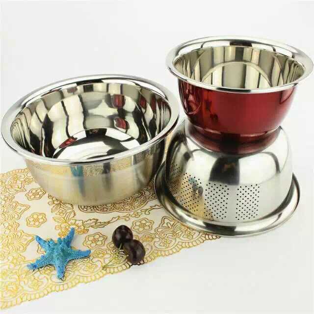 メーカー直販ステンレス特厚ヨーロッパ式米篩三点セット果物と野菜のプレゼント/景品水たまり
