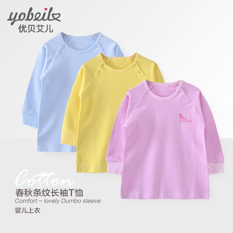 Ubeier 0-3歳ベビー春秋ストライプラグランスリーブコットントップボトムシャツT106