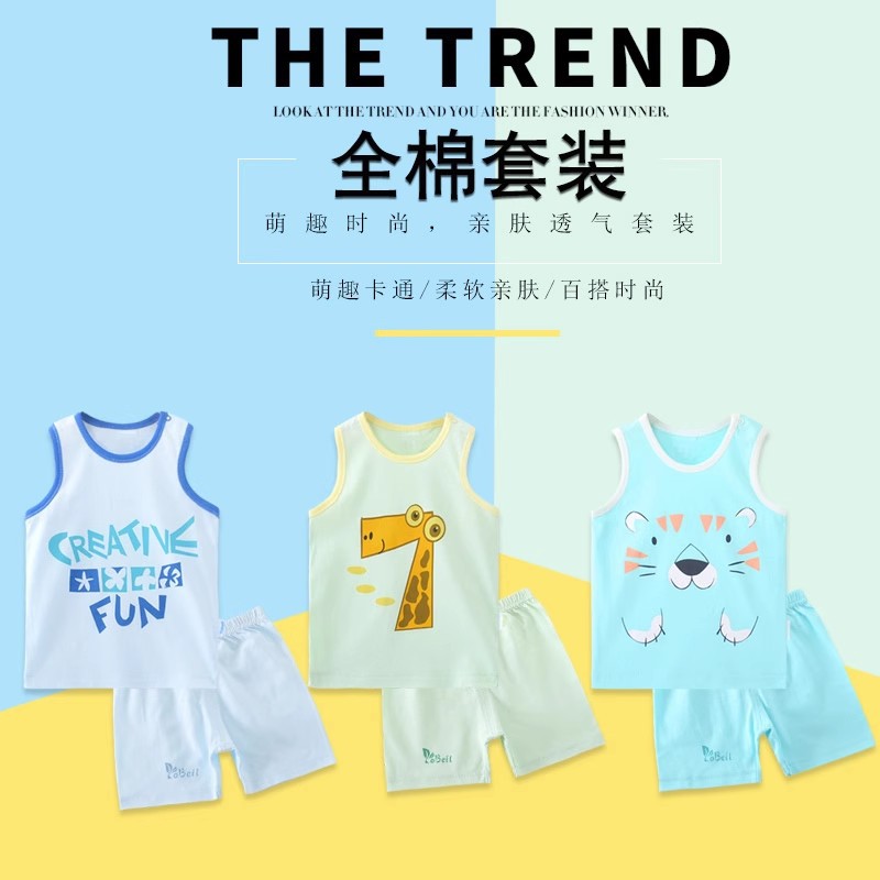 ベビー夏服子供ベストセット 0-1-3 歳の赤ちゃんの夏服薄い綿サスペンダーショーツセット
