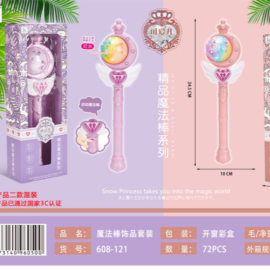 608-121 2色照明音楽魔法棒フラッシュ女の子音楽棒アンドロメダ王女ままごとフラッシュ棒