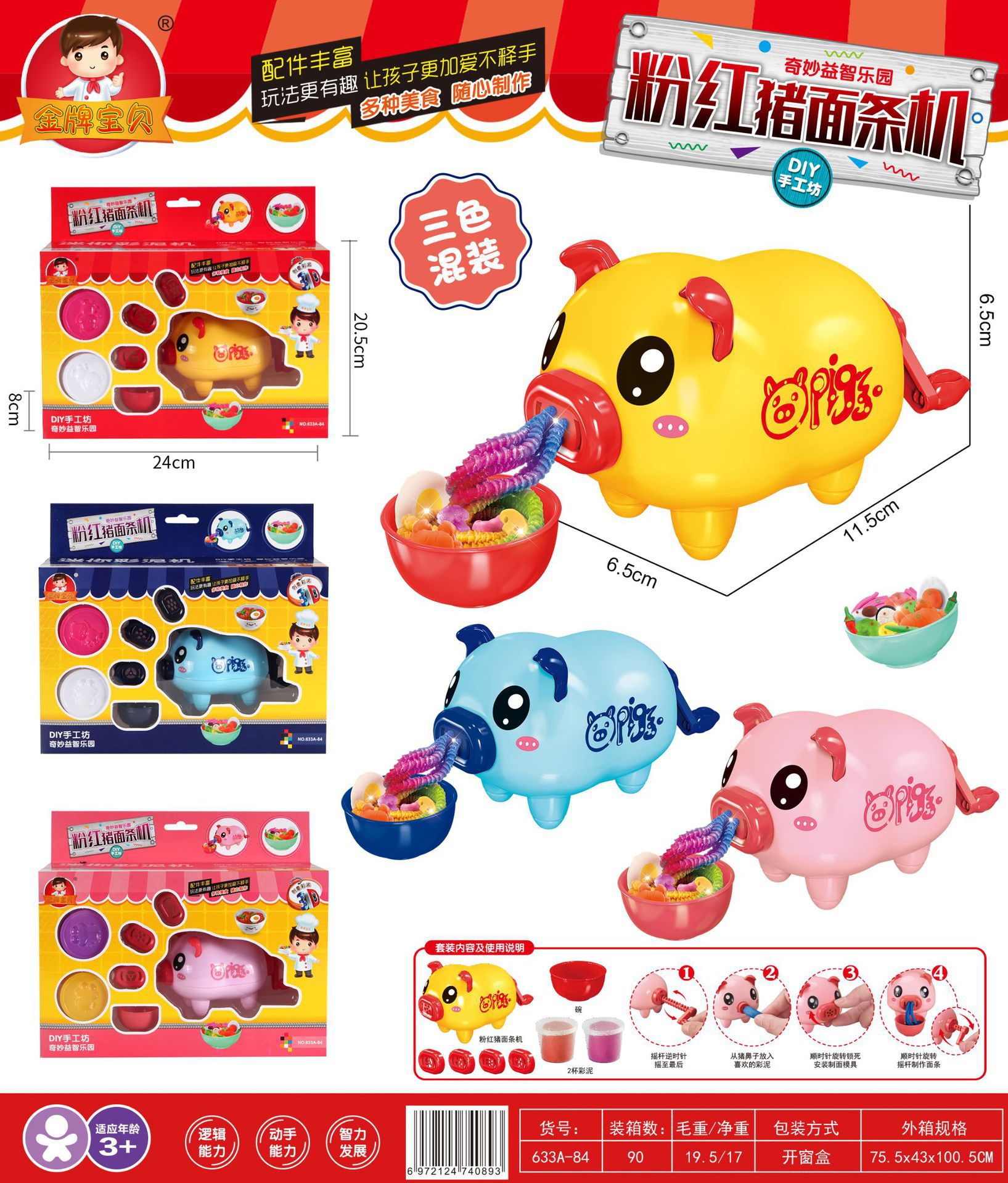 子供のまごとの色の泥のおもちゃは色の泥のおもちゃの小さいピンクの豚の色の泥の麺機のネットの赤い震え音の親子をシミュレーションします。