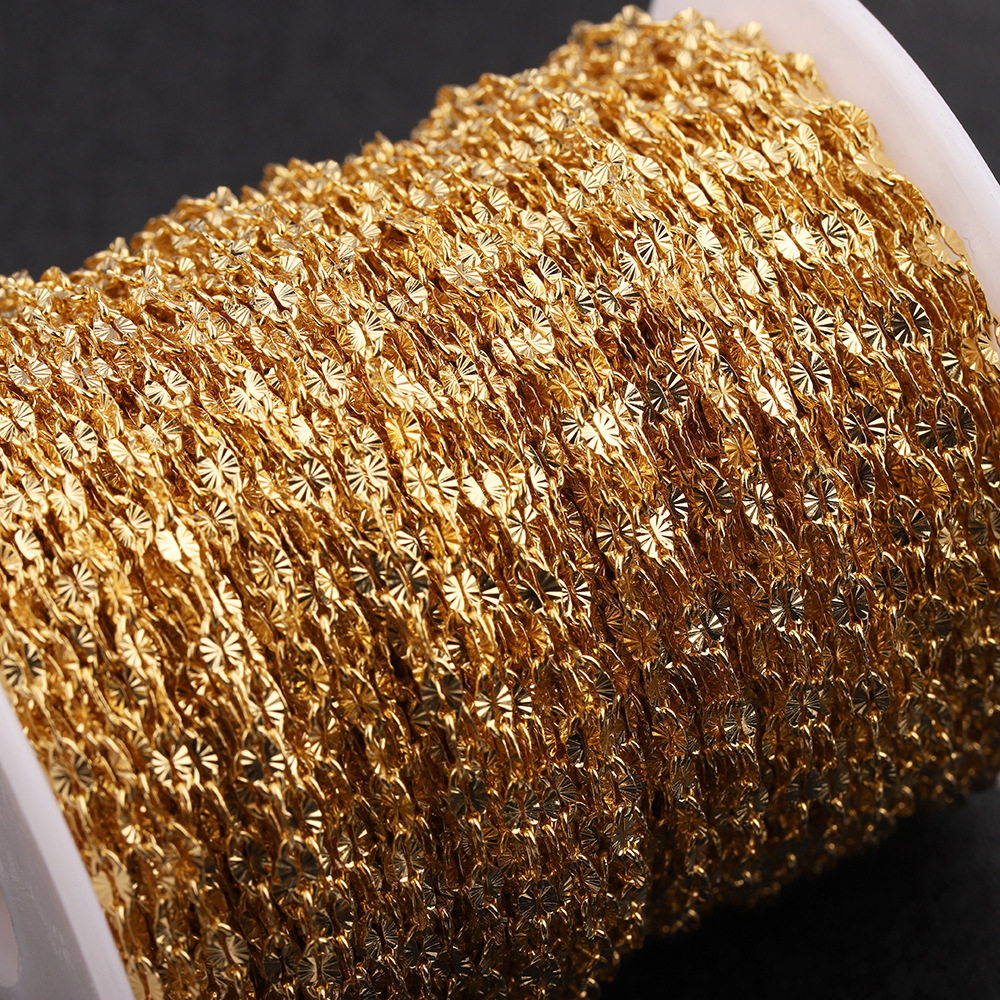 保色ステンレス横身挟みチェーン18kエンボス細いチェーンスパンコールチェーンdiy女性アクセサリー装飾チェーン