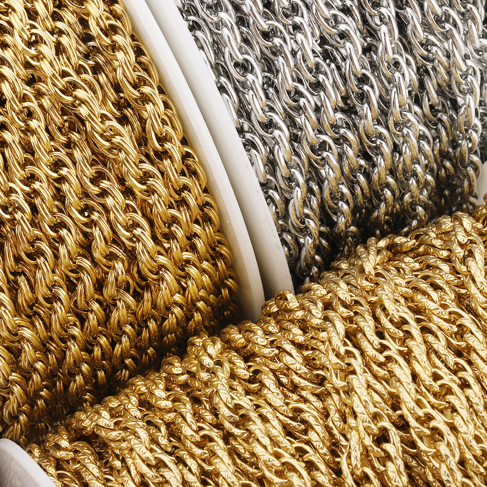真空メッキステンレス角線二重ボタンチェーン二重織り角線リングチェーンねじツイストチェーンdiy宝飾品米チェーン