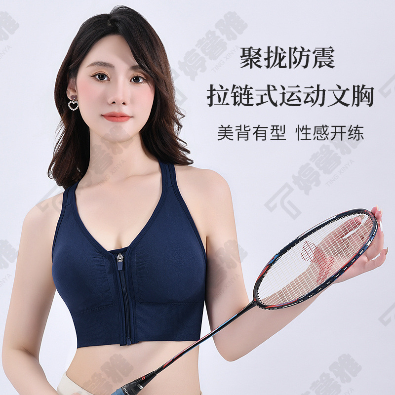 スポーツ型の美背の前のファスナーは振動防止の下着の女性のフィットネスのランニングの高弾の交差する背中の鋼の輪のブラジャーがありません。