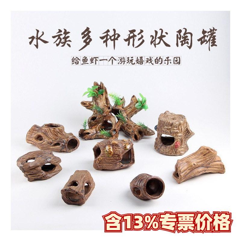 水槽の陶缶の置物の異形の造景の装飾品の水槽はエビの慈鯛を鑑賞します。