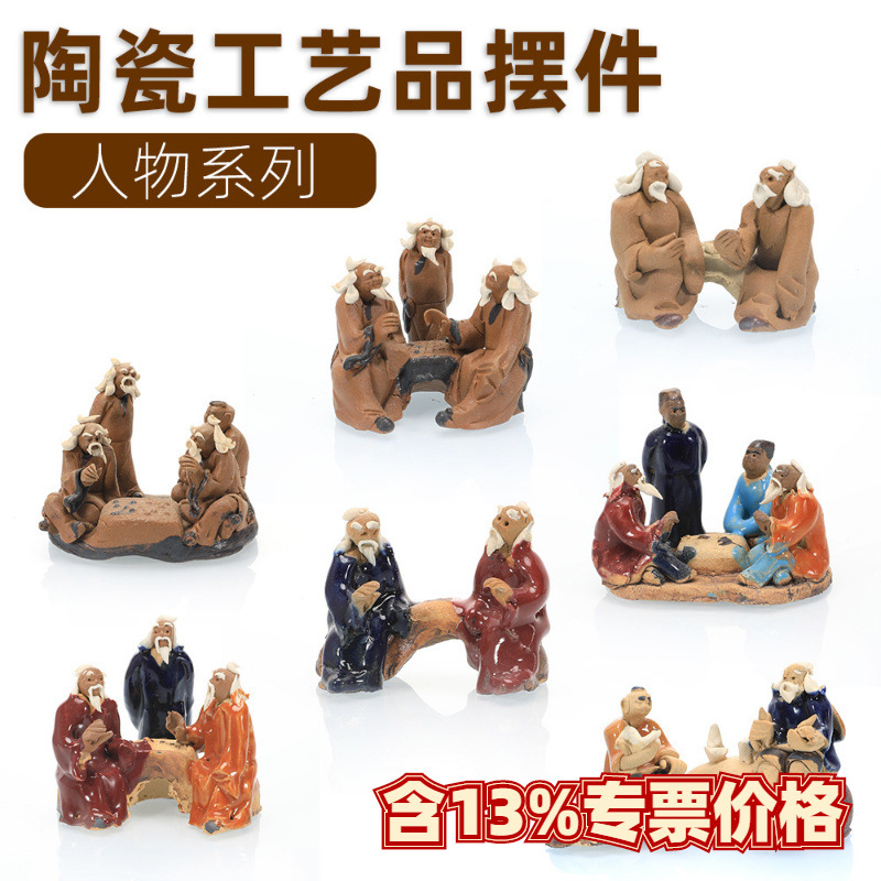 金魚鉢造景園林沙盤模型盆栽下棋微景観置物装飾陶磁器工芸品人物老人