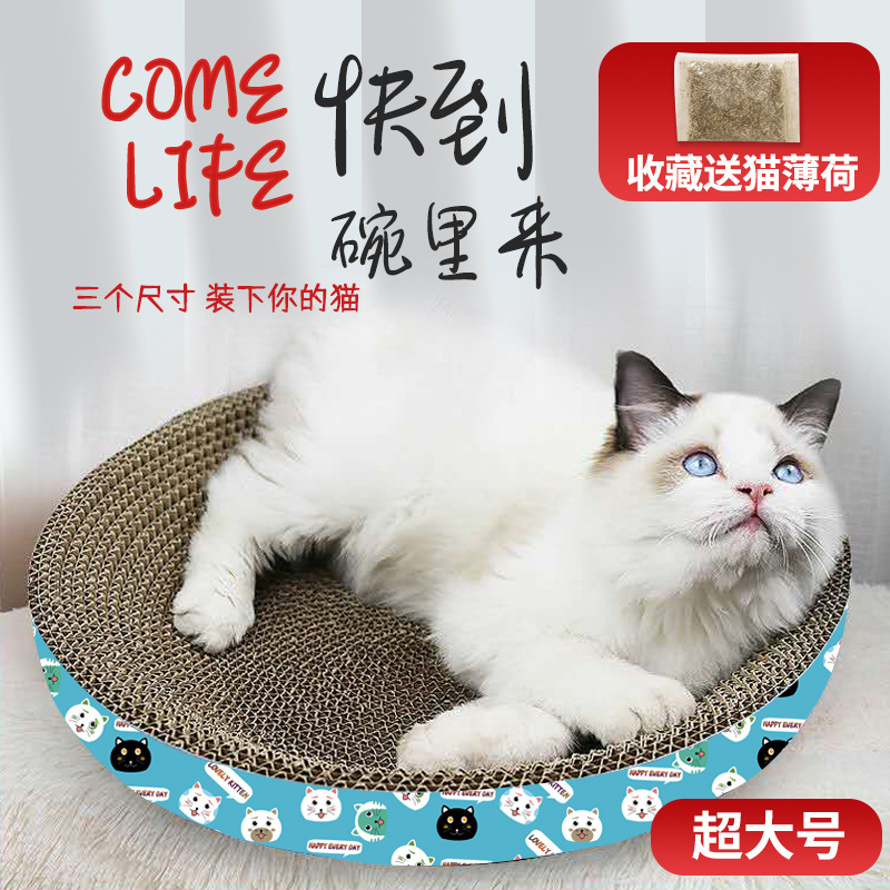 汪子猫猫掴み板円形爪磨き器円形猫用品玩具猫爪板段ボール耐摩耗三角型