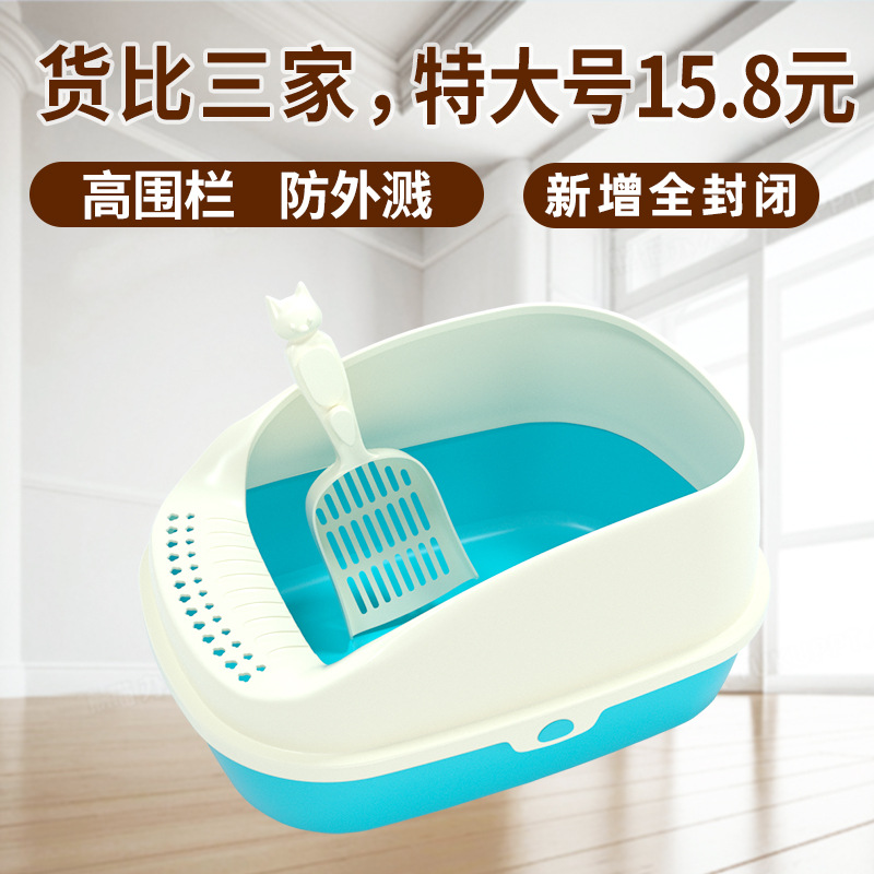 ペット猫砂盆特大サイズ半閉鎖猫トイレ猫糞盆尿盆外から猫砂シャベルペット用品