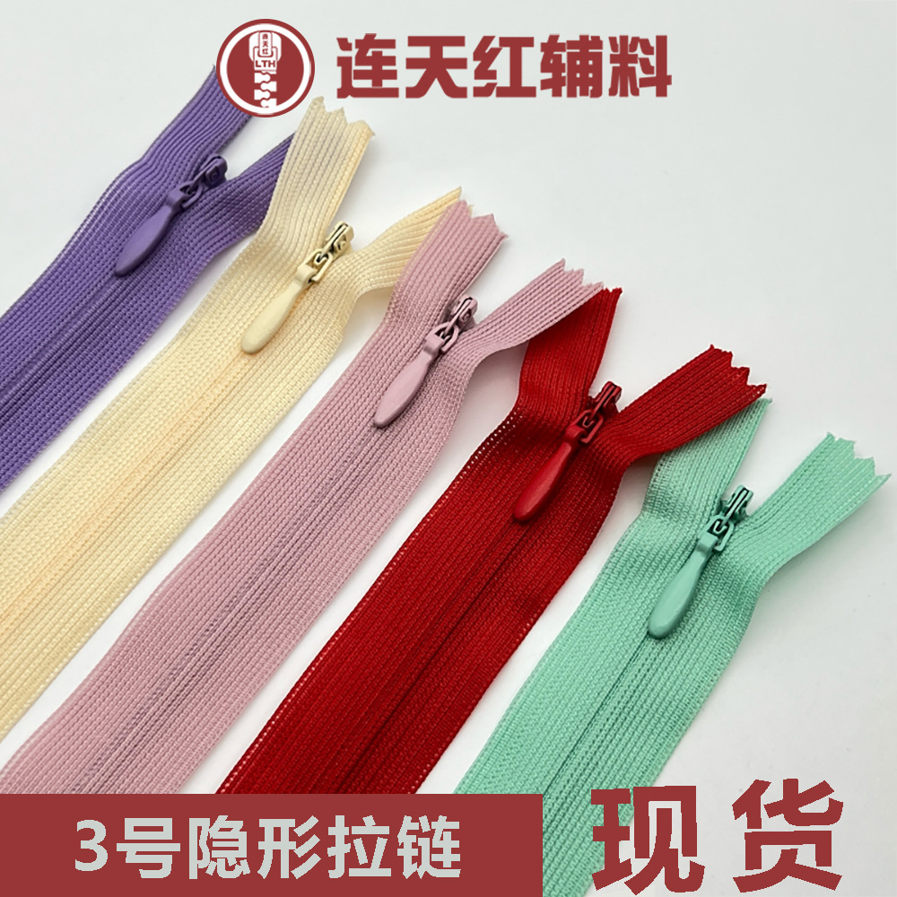 在庫あり卸売カラー3号インビジブルジッパー、メッシュエッジ、クローズドタイプ、インビジブルジッパー、ドレス、バッグ、ホームテキスタイル用ジッパー