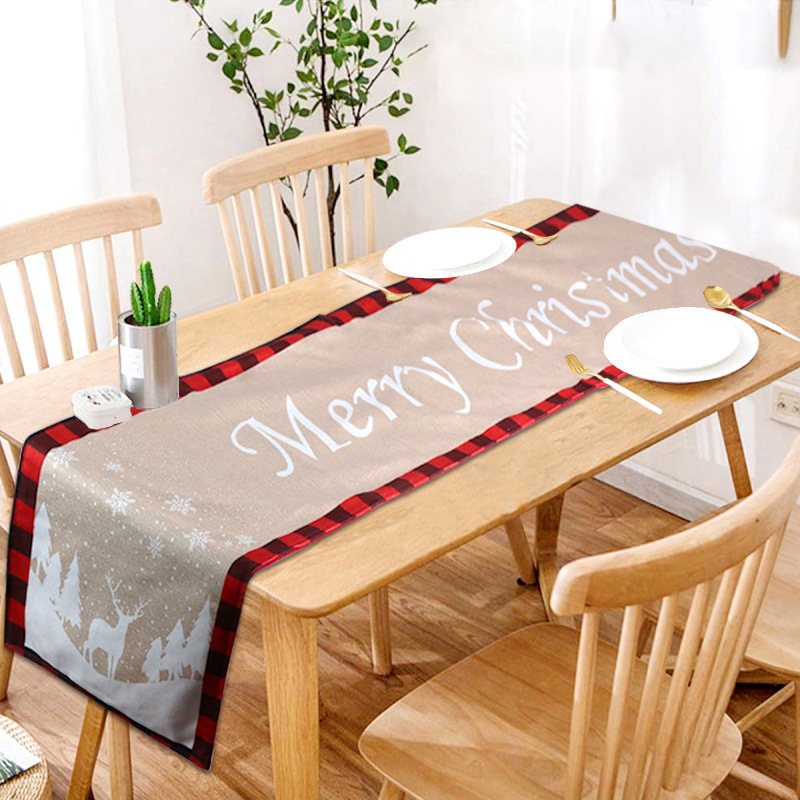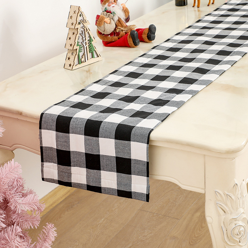 2023新しいクリスマス祭りホーム色织りテーブルマット北欧ナプキン白黒格子麻布テーブル旗装饰