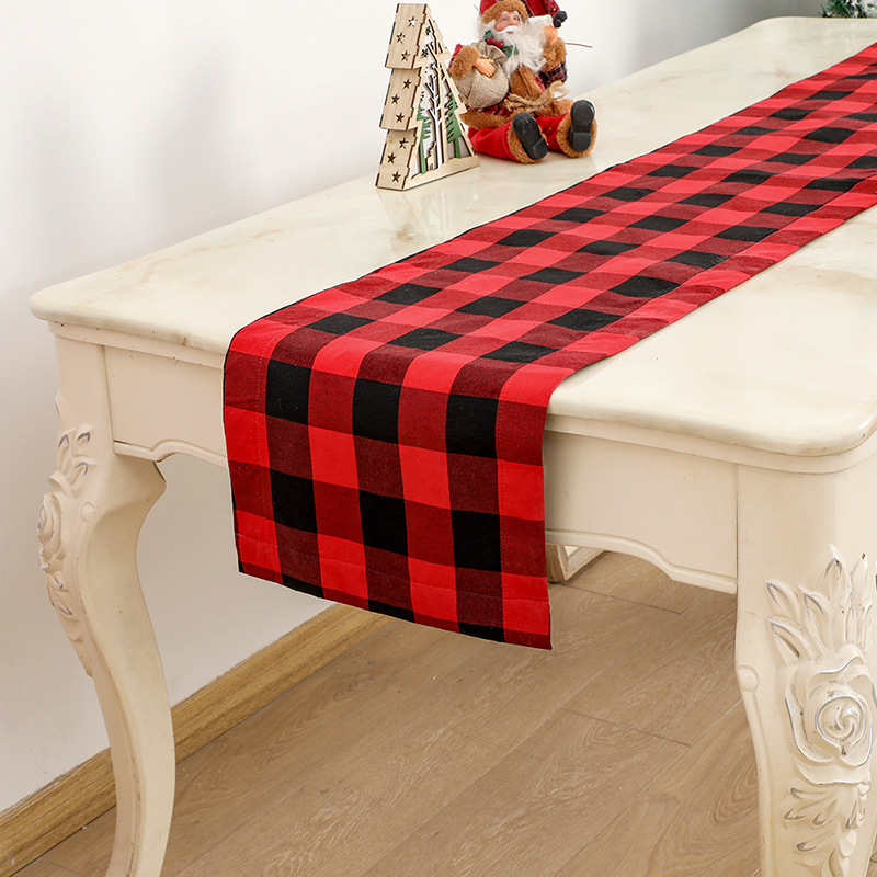 2023新しい装飾クリスマス祭りホーム色織テーブルマット黒赤格子麻布テーブル旗北欧ナプキン