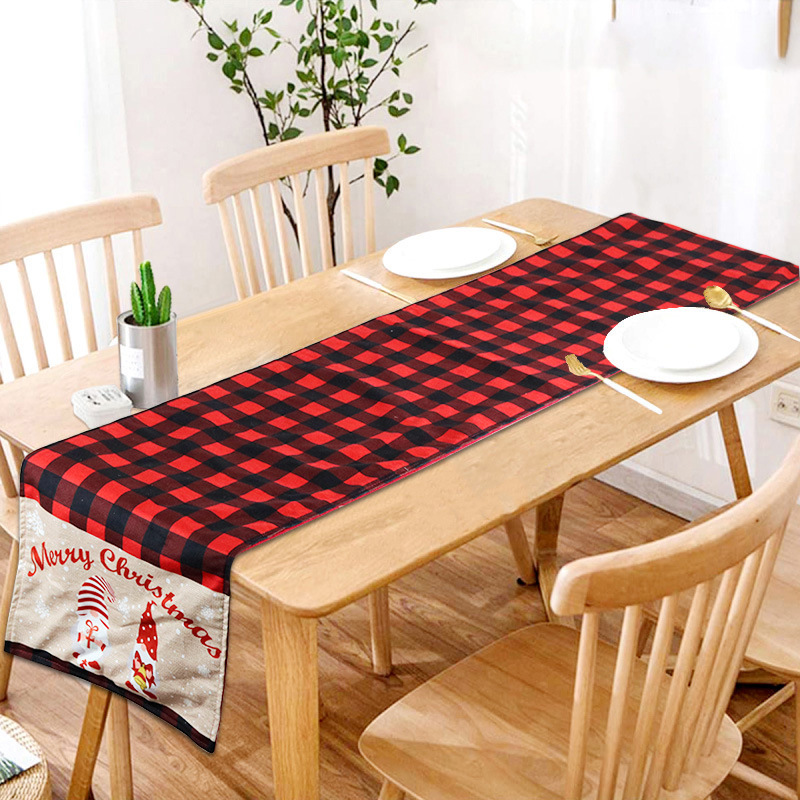 2023クリスマス小人無顔老人アマゾン黒赤格子テーブル旗装飾テーブルマット北欧ナプキン