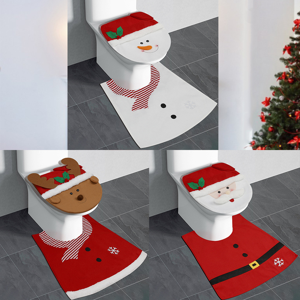 クロスボーダークリスマス便器保護カバーサンタクロース雪だるまヘラジカ便器カバーマット2点セットクリスマス装飾