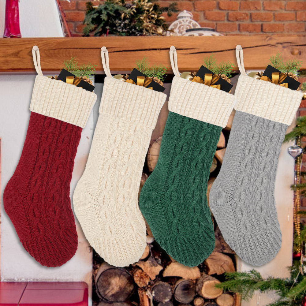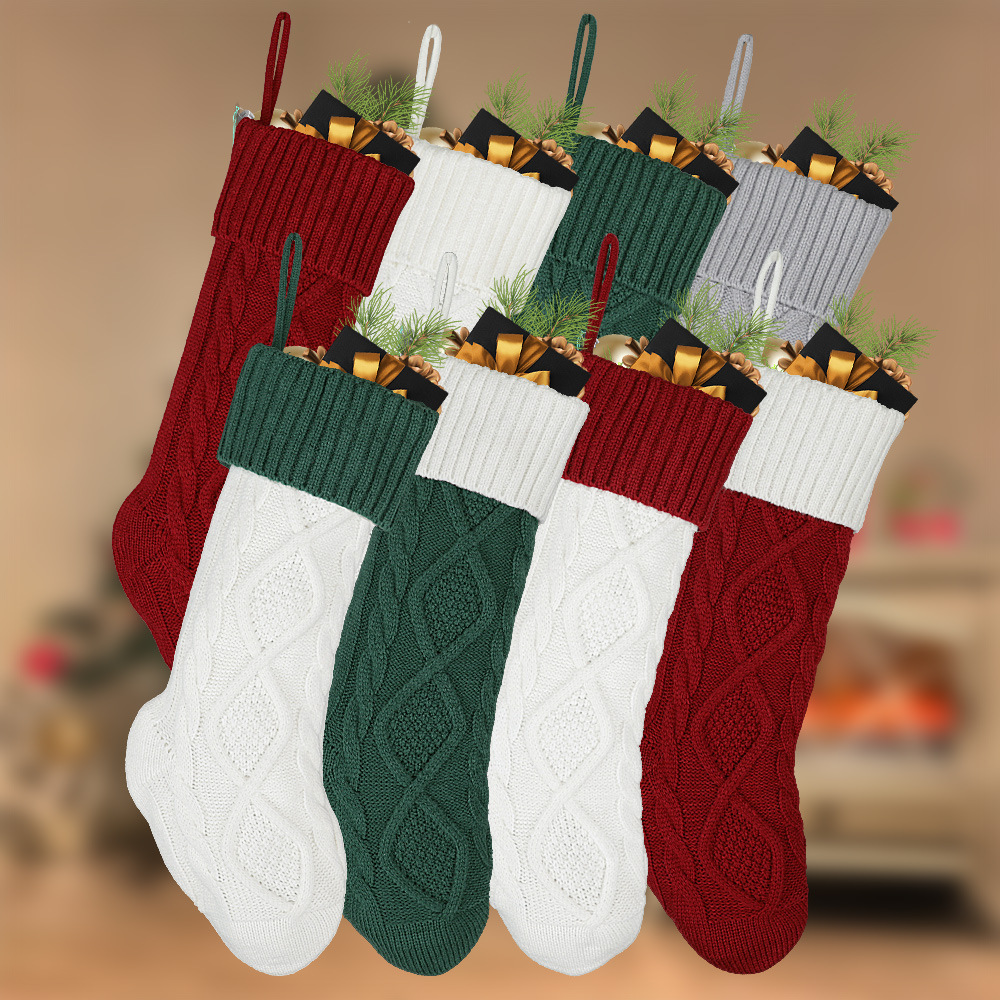 アマゾンニットクリスマスギフト袋太線毛糸飾り靴下色合わせ麻花ギフト袋クリスマス飾り靴下