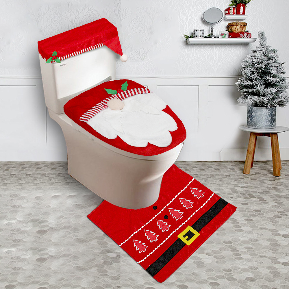 クロスボーダーのクリスマスの顔のない老人の便器のカバーの装飾の滑り止めのマットの便器の蓋の3つのセットはトイレの装飾品を適用します。
