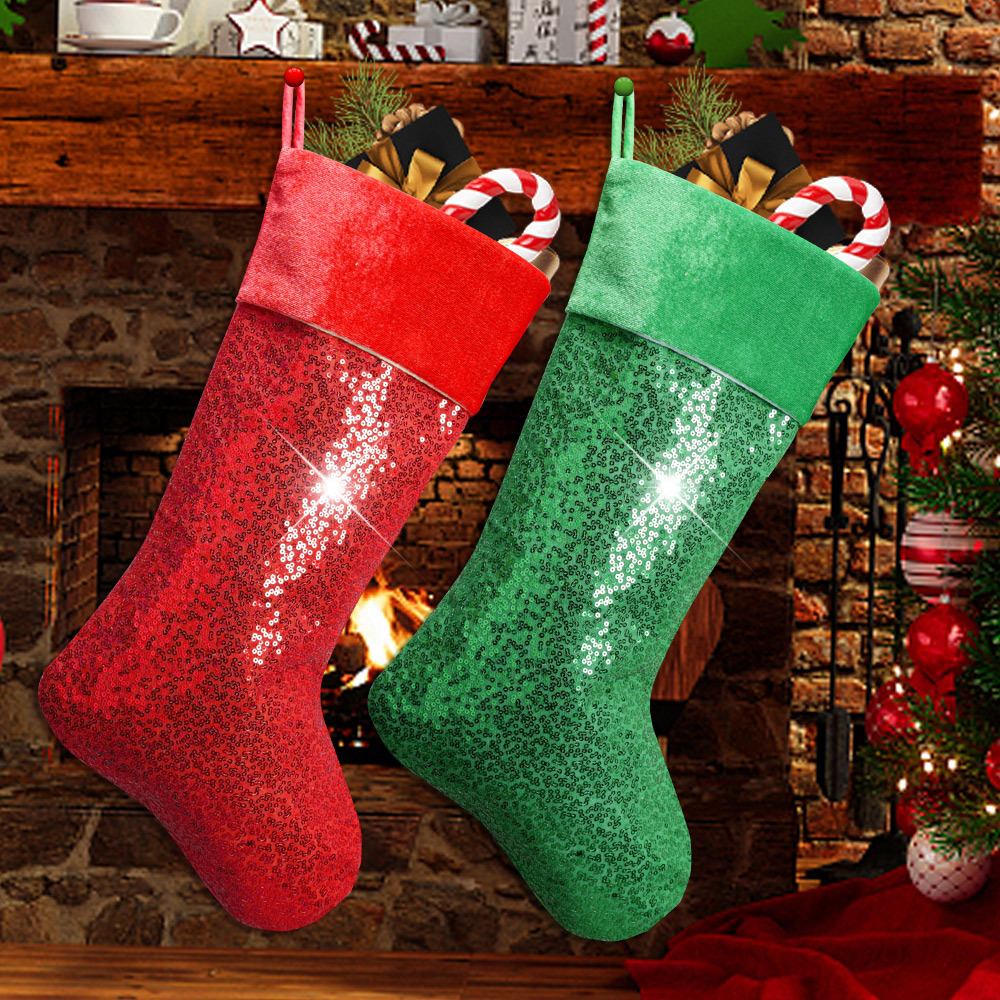 国境を越えたクリスマスビーズが輝くプレゼント袋に靴下を掛けた新しいクリスマスプレゼント靴下クリスマス暖炉クリスマスツリー装飾