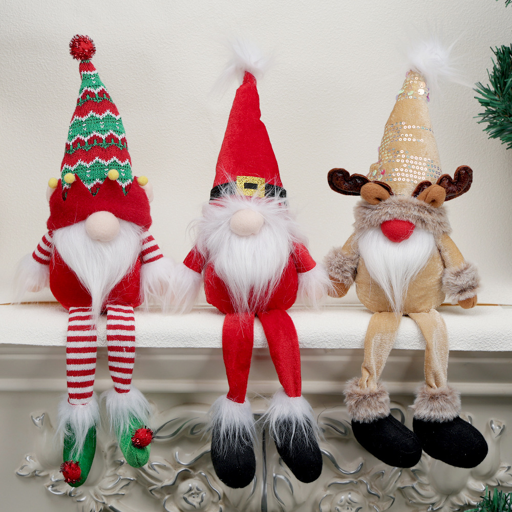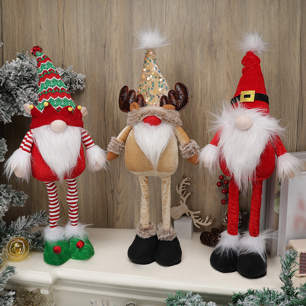 クリスマスの多くの種類の赤緑の布芸の長い足の伸縮の精霊のぬいぐるみは男女の種類の精霊のぬいぐるみのクリスマスの装飾を売ります。