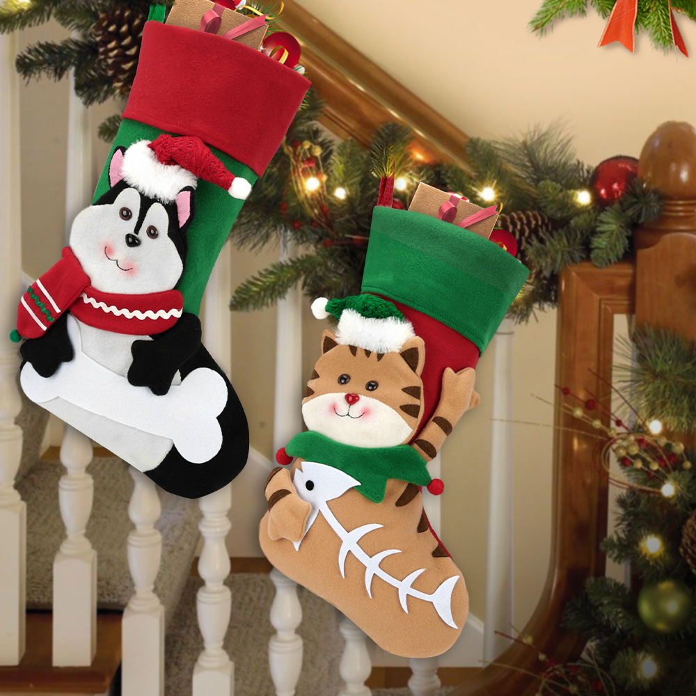 クロスボーダークリスマス漫画猫犬クリスマス靴下装飾クリスマスツリー暖炉ストラップクリスマスホームウィンドウ装飾
