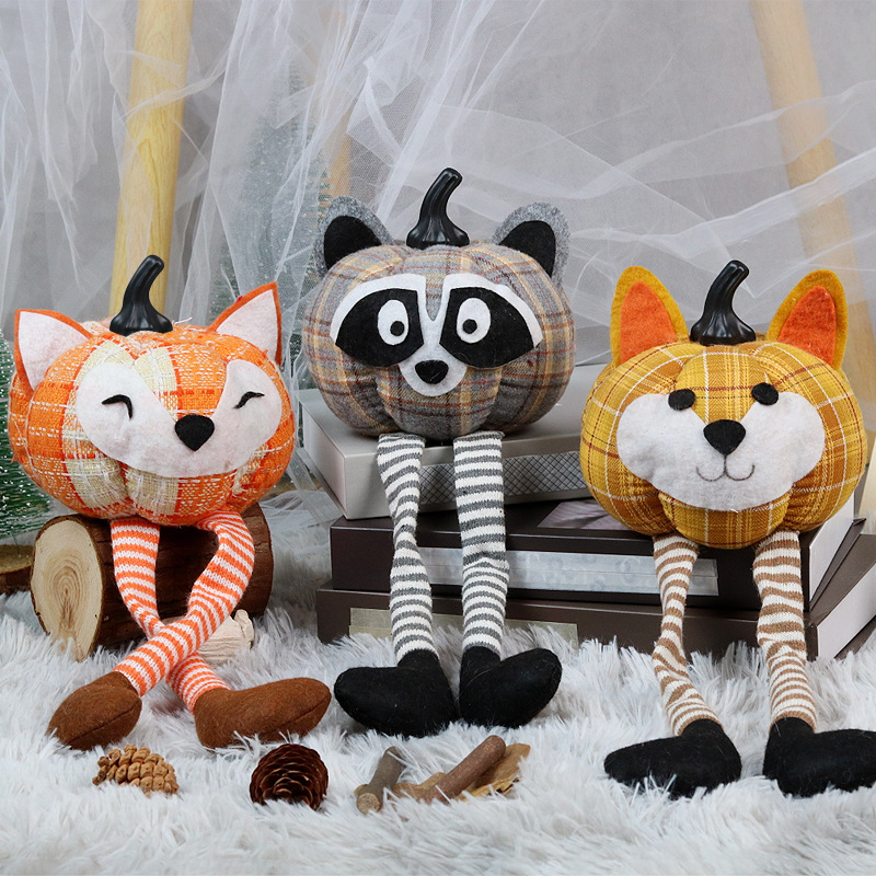 越境新品感謝祭カボチャ長掛脚人形装飾創意動物カボチャ公仔秋の家庭装飾