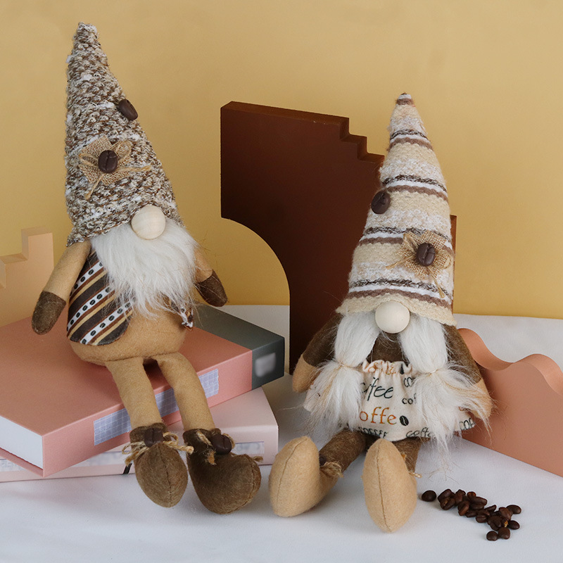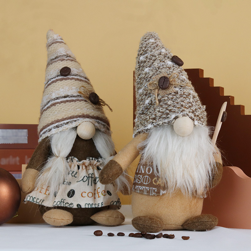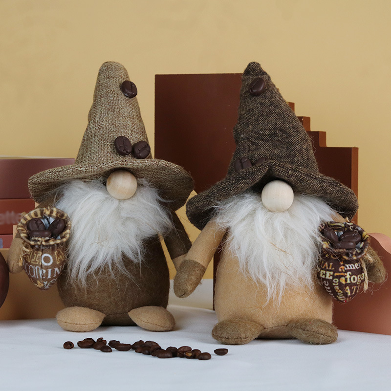 新しい家の装飾はコーヒーの小人の人形の顔のない人形の手でコーヒーの豆のルドルフの子供の装飾を持ちます。