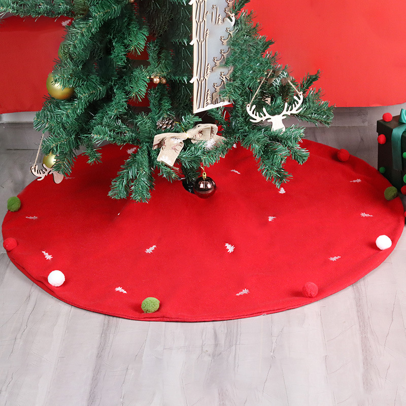 クリスマスの赤い木のスカートのクリスマスツリーの底はエプロンを飾ります。