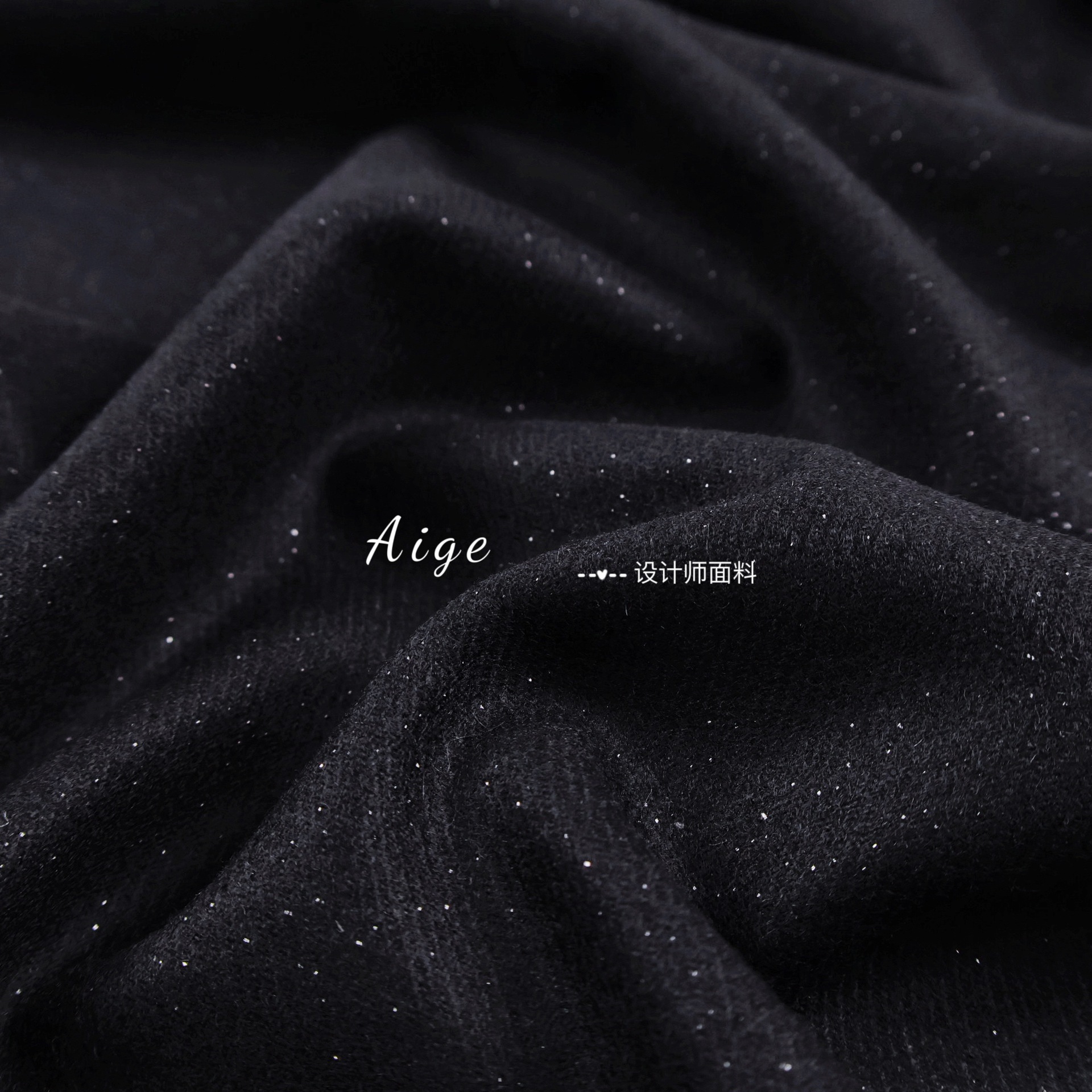 繊細で純粋な黒色の細い閃光の沢の明るい糸は金羊の毛の生地の秋冬にスーツのスーツの布地をします。