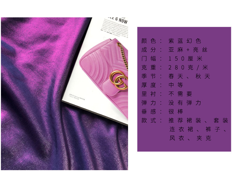 瑠璃糸麻 ● 高品質幻色紫青光沢繊細垂れ感亜麻ファッション生地ワンピース生地