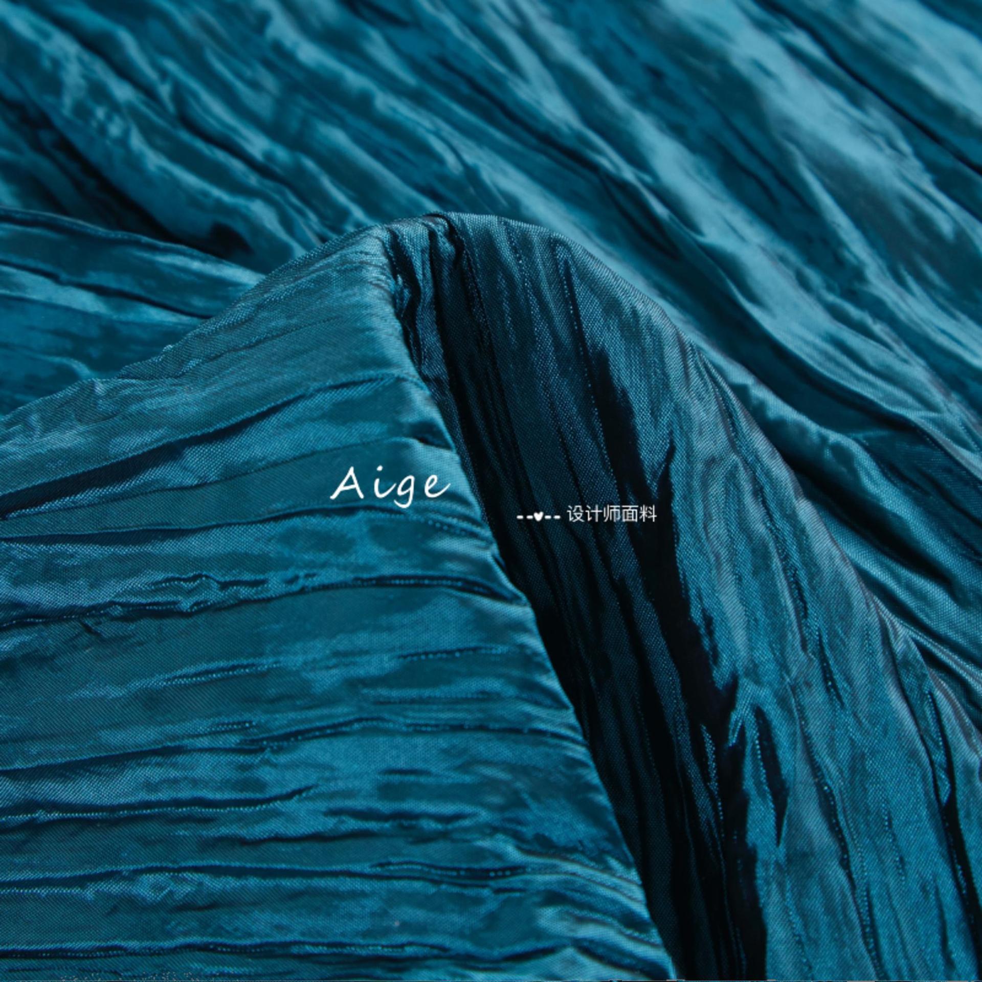 ファッションしわ ● 凹形デザイン宝石青光沢郭形不規則しわ生地半スカート風衣生地