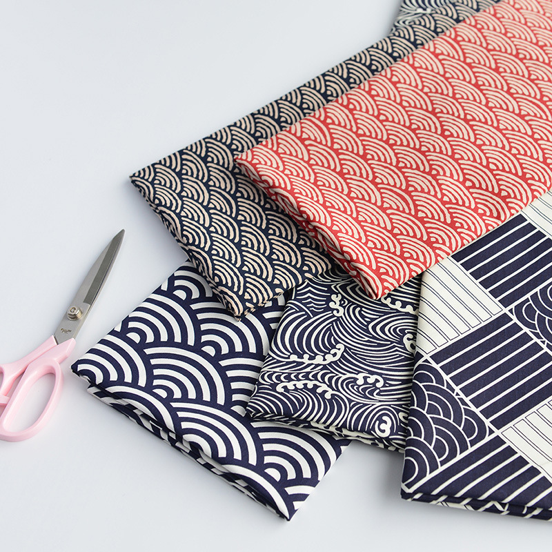 布地純綿日本式布地古風国風純綿綾織り綿布魚鱗紋波と和風基礎紋様