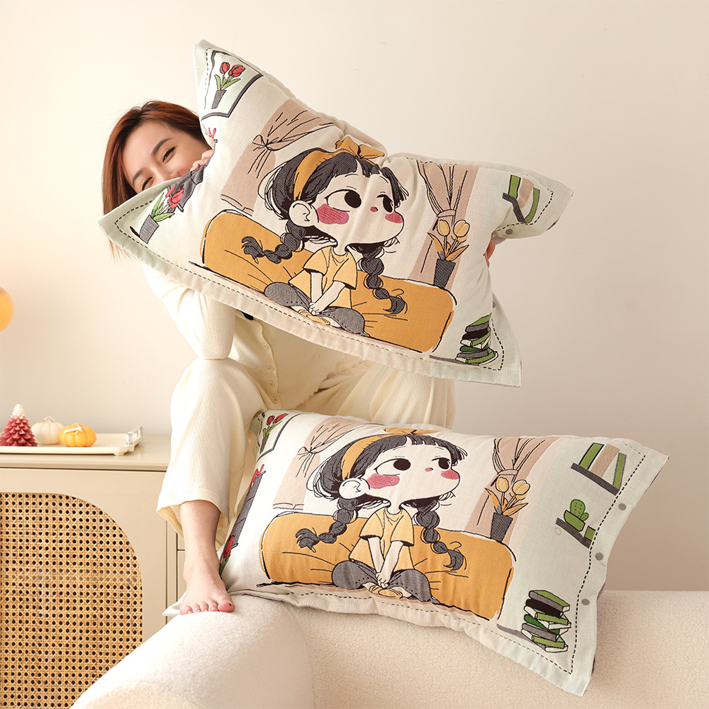ボタンを押して8層の純綿ガーゼ枕カバーをセットします。