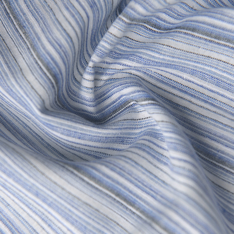 青と白の黒い線のストライプのポリエステル綿の麻の秋冬のdiyの手作りのカバンのワンピースの子供服のシュシュのテーブルクロスの子供服の生地