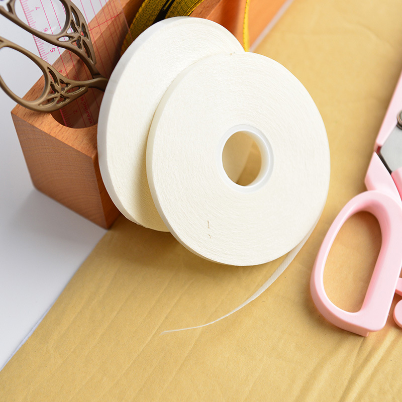 生地用位置決めテープ接着剤で補助材料布用水溶性両面テープを手作業で作る
